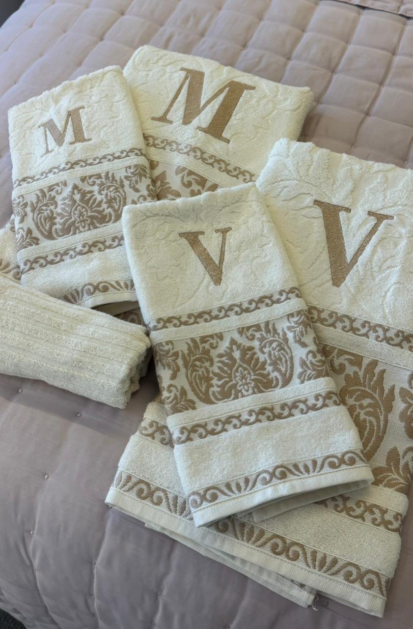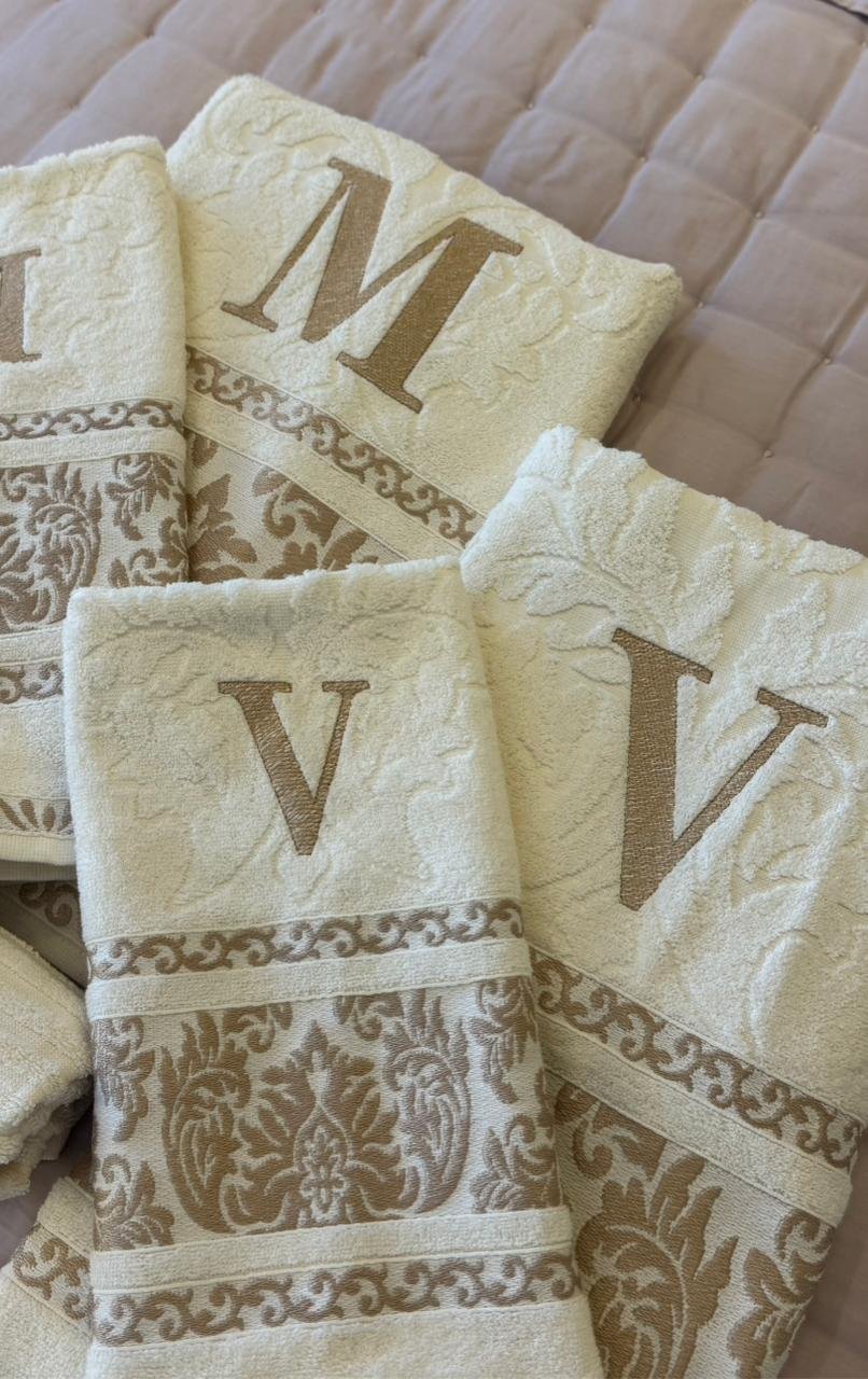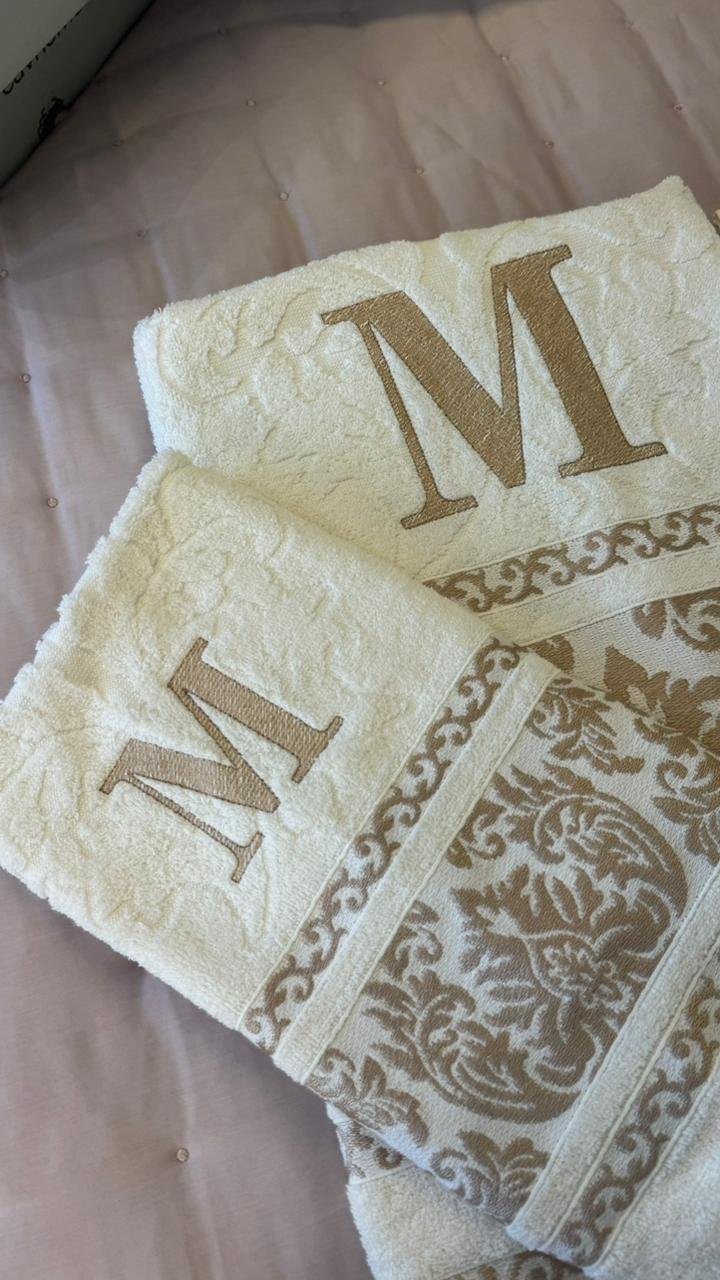 Você deve selecionar no campo “Personalizado 1” a inicial desejada, que será bordada em uma toalha de banho e uma toalha de rosto, igualmente no campo “Personalizado 2” para selecionar a personalização da outra dupla.